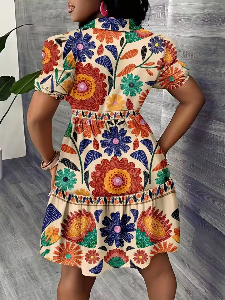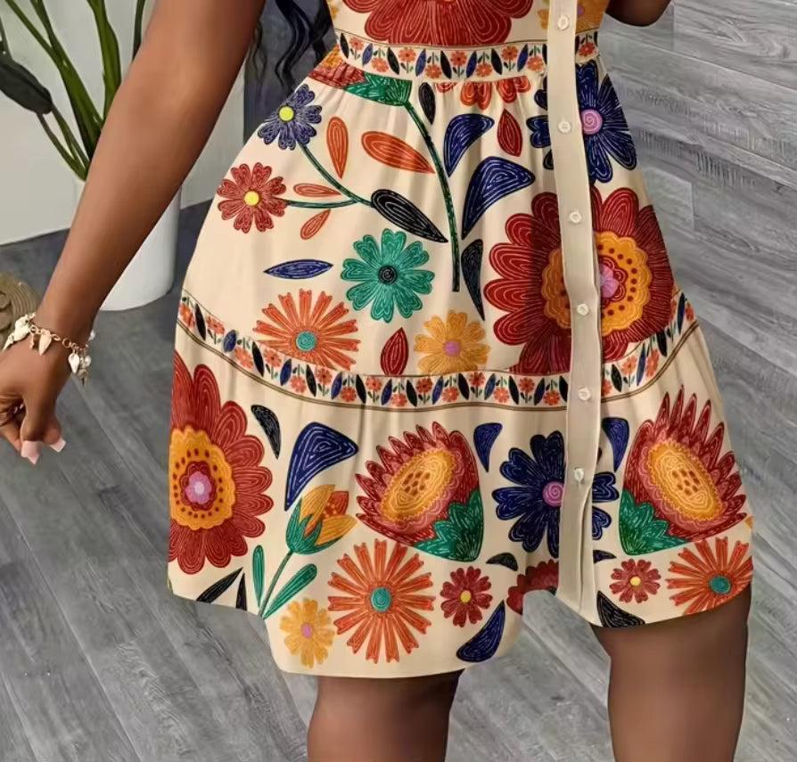 A delicate ruffle hem adds movement and charm, making this mini dress perfect for vacations, brunches, or casual outings.